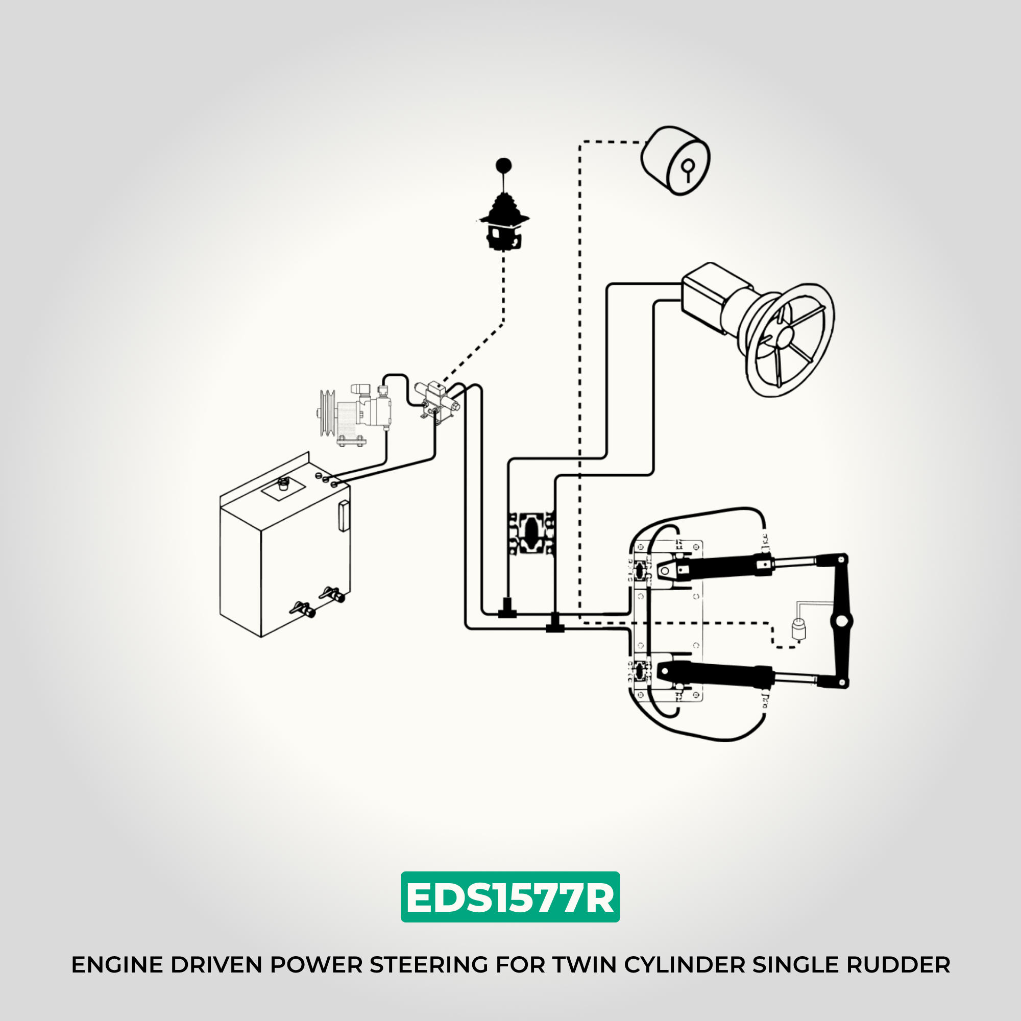 EDS1577R Inboard Steering System | Twin Cylinder, Single Rudder | Glydus