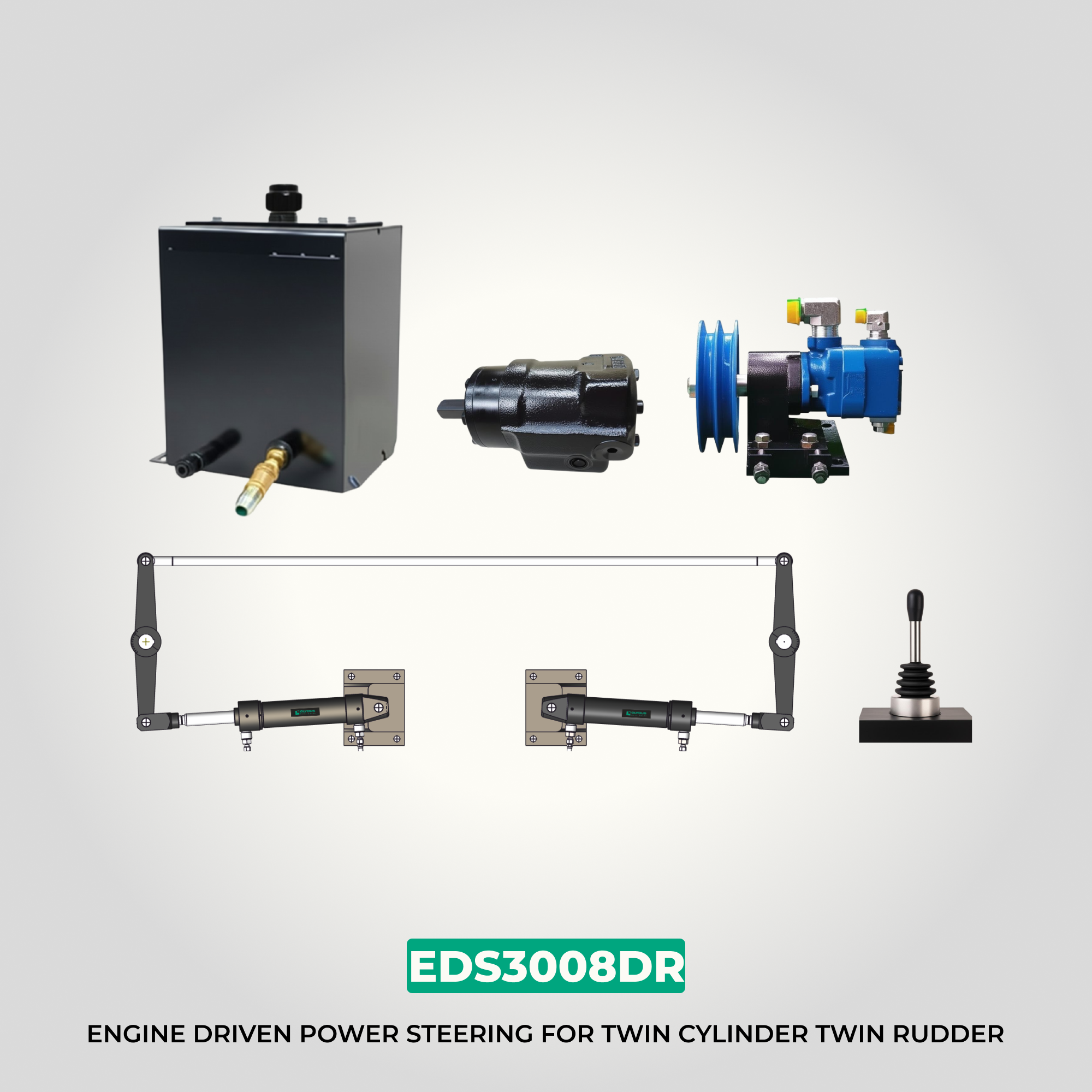 EDS3008DR Inboard Single Ended Steering | Twin Cylinder, Twin Rudder | Glydus