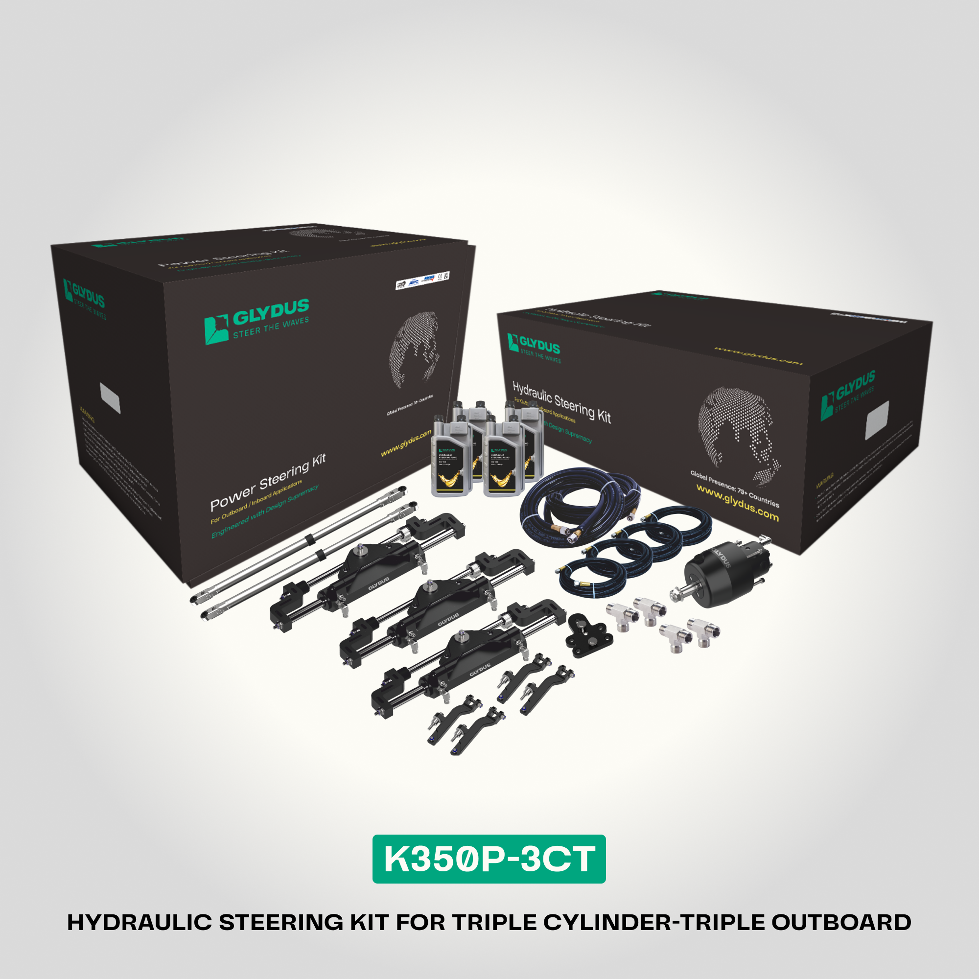 K350P-3CT | Hydraulic Steering kit for Triple Outboard upto 1050HP