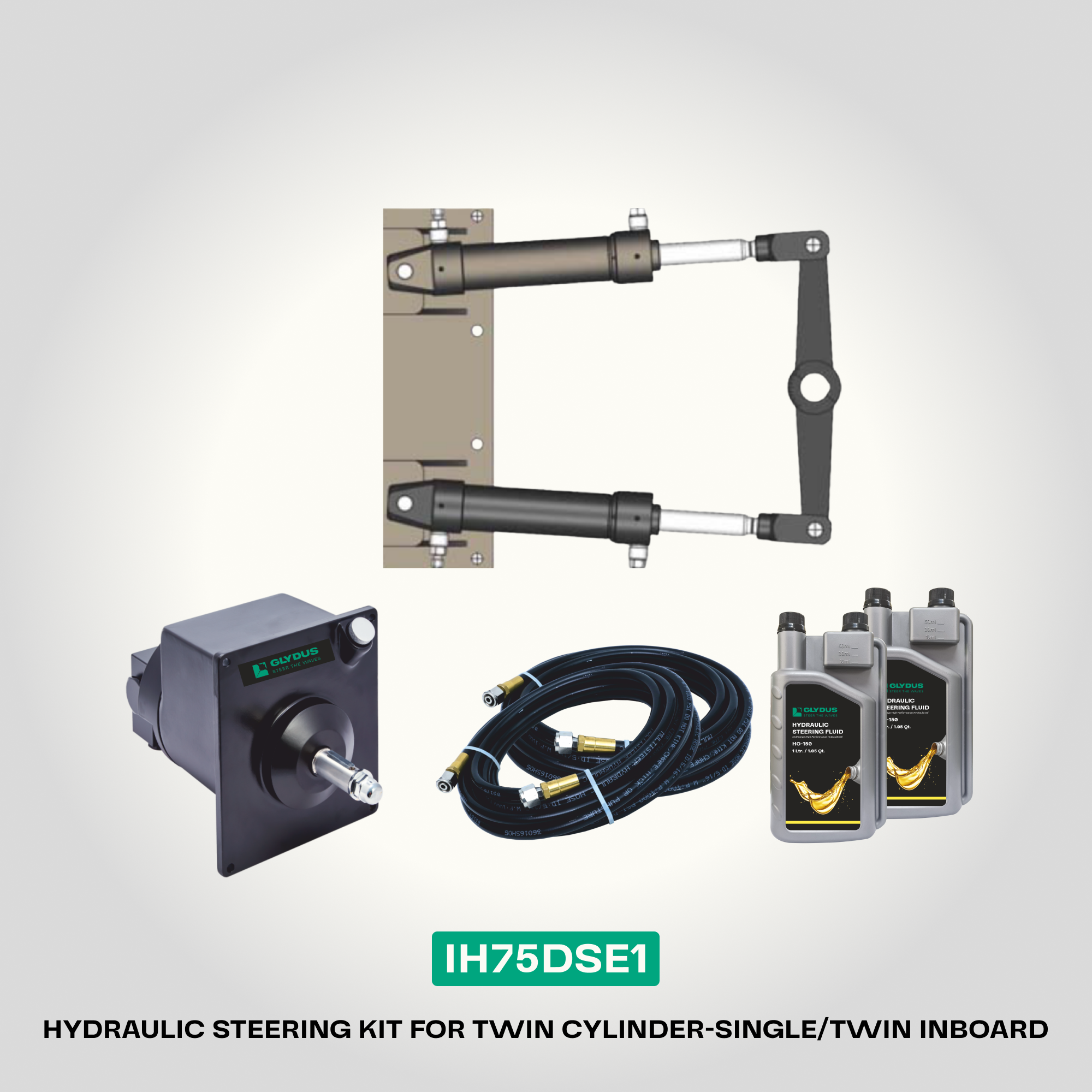 Glydus IH75DSE1 from the Steel Series the premier unbalanced hydraulic steering system for twin cylinder inboard applications. Built for serious boaters who demand more.