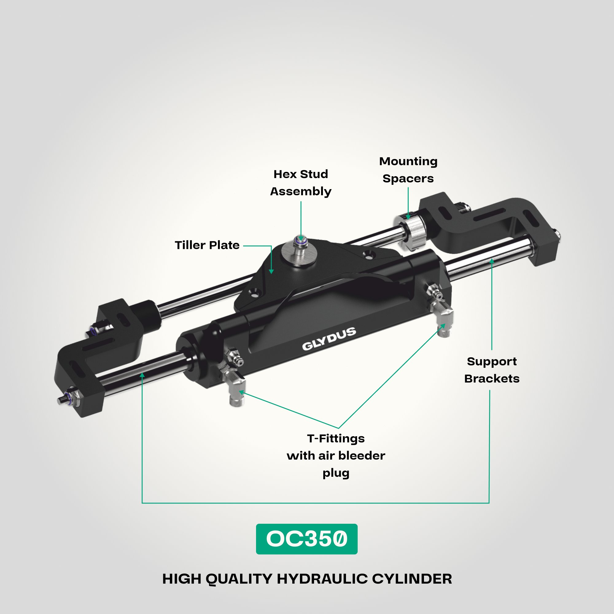 Glydus Front Mount Outboard Hydraulic Cylinder. Designed for smooth control, long-lasting durability, and effortless installation. A must-have for serious marine enthusiasts!